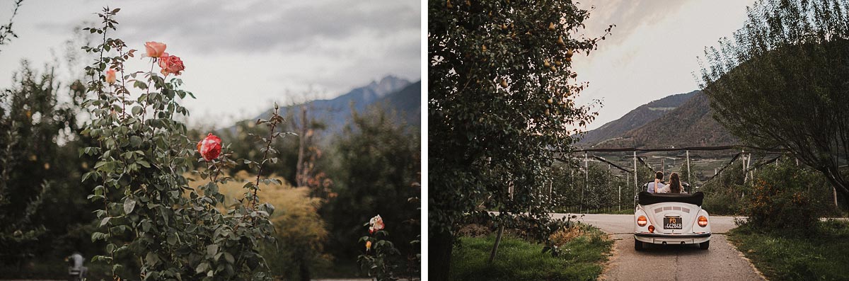 For Henriette and Stefan's wedding, I traveled to Tscherms, South Tyrol, in the summer. From our first meeting in my studio, I was excited to capture their day. Their venue, Miil, was beautiful and had been recommended by many couples. I instantly connected with them, and the day before the wedding, we spent time in Meran, capturing portraits in the lovely evening light. They were calm, relaxed, and happy to enjoy a small date together before the celebration the following day.